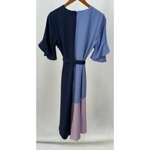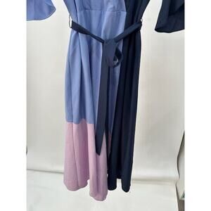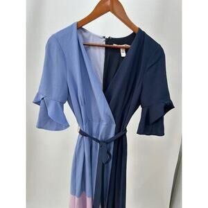 Hutch Faux Wrap Dress Short Sleeves Knee Length Tie Waist Colorblock Blue Pink M