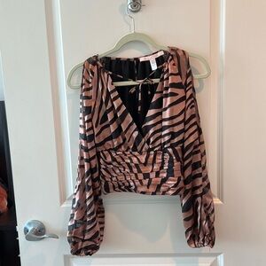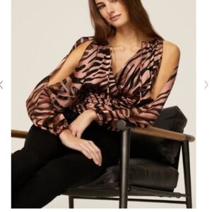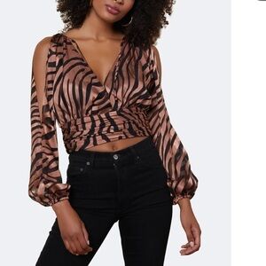 Modern cold-shoulder styling and a surplice neckline show off just the right amount of skin on this zebra- print Hutch top that's ready for a night out.