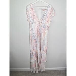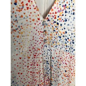 Hutch Multi Heart Short Sleeve V-Neck Button Front Hi-Low Maxi Dress White 12