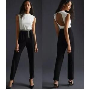Hutch Open Back Jumpsuit Sleeveless Mock Neck Tapered Leg Black & White Colorblock 8