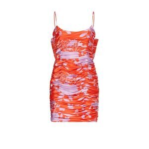 Hutch Orange and Purple Ruched “Reggy” Dress with Back Bow – Size 0