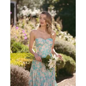 Hutch Phoebe Strapless Tiered Maxi Dress Sleeveless Teal Floral Size 8 NWT