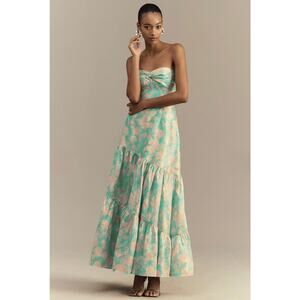 Hutch Women's Phoebe Strapless Tiered Maxi Dress Sleeveless Teal Floral SZ 8 NWT