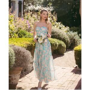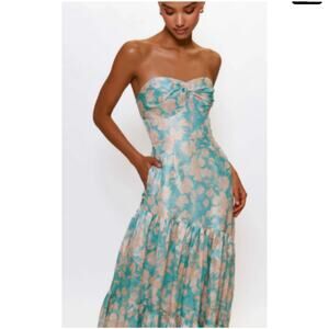 Hutch Phoebe Strapless Tiered Maxi Dress Sleeveless Teal Floral Size 8 NWT