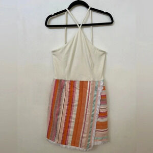 This vibrant mini dress by Hutch features a playful blend of pink and orange hues, perfect for making a statement. Its chic design is ideal for casual outings or summer events, offering both style and comfort.