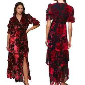 Hutch Red Black Velvet Floral Wrap Maxi Dress Womens XL Boho Maximalist Formal