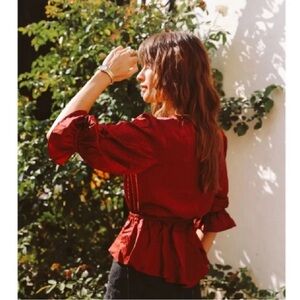 Hutch Reeves satin top size 0X Merlot burgundy maroon peasant Anthropologie