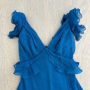 Hutch Rumi Open Tie Back Ruffle Maxi Dress Gown Blue Chiffon