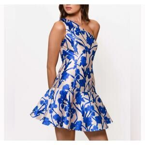 Hutch Silas Floral One-Shoulder Minidress Cobalt Vine Orchids Size 12 NWT