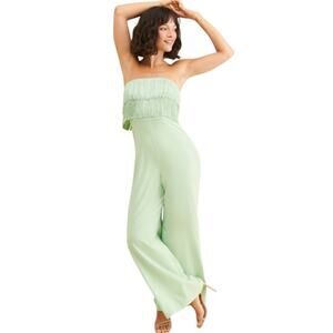 Hutch Strapless Fringe Wide Leg Jumpsuit Light Green Size 6 Anthropologie