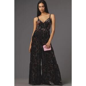 Hutch Tiered Velvet Jumpsuit - 18 W - Black Motif