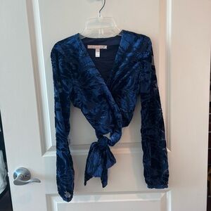 A velvet burnout effect lends boho vibes to this plush Hutch crop top in a chic wrap silhouette.