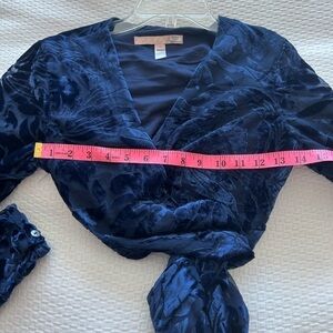 Navy Horal printed velvet (80% Viscose, 20% Nylon). Top.