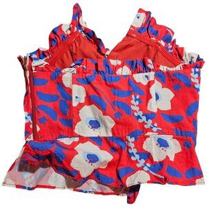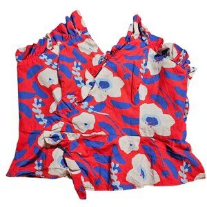 Hutch Womens Floral Wrap Top Red Blue White Sleeveless Ruffle V-Neck Size S