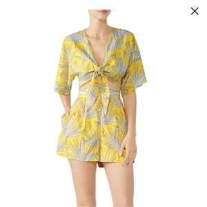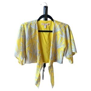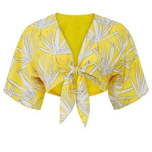 Top. Short sleeves. V-neckline. Front tie closure. Fully lined. 14" from shoulder to hemline. Imported.