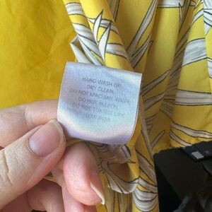 Yellow leaf printed woven crepe de chine (100% Polyester).