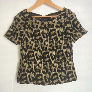 Hutch blouse top sz XS cheetah print textured keyhole tie back black gold