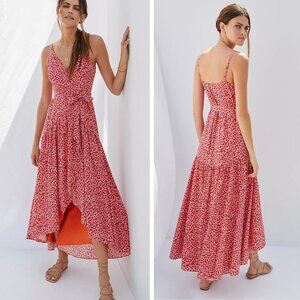 Hutch x Anthropologie Orange Dots Stripes Flutter Wrap Midi Dress 20719