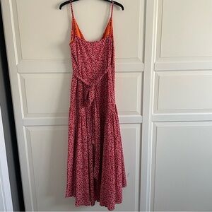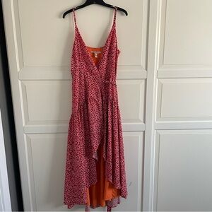 Hutch x Anthropologie Orange Multi Dots Stripes Flutter Wrap Midi Dress Size M