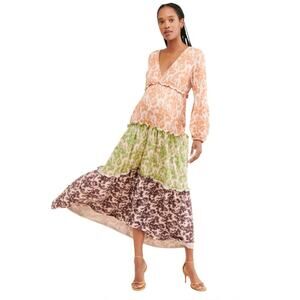 Hutch x Maxey Greene Long Sleeve Floral Boho Maternity Maxi Dress Size Medium