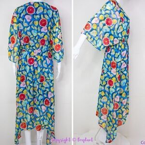 Hutch Anthropologie summer fruit shark bit hem kimono sleeve dress, XL