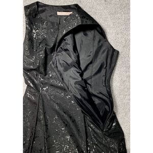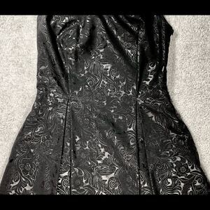 Pictures don’t do this dress justice! Beautiful A-line dress! The whole dress’ color is black but shines with matte floral design! The fact that this dress is a midi with pockets😱, makes this dress so much more desirable! (: