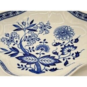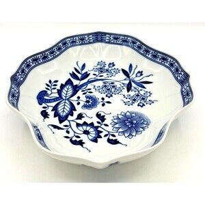 Hutschenreuther Serving Bowl Dish Blue Onion Design Scalloped Rim Germany VTG