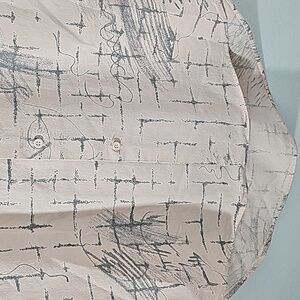 Hutspah mens button-down shirt. Short sleeve. Size medium. Peach artsy.