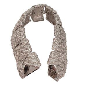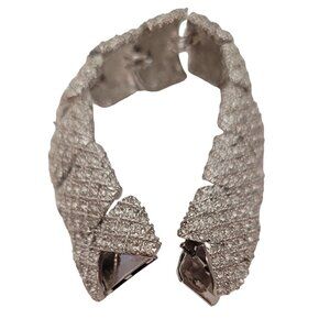 Hutton Wilkinson Silver Tone Clear Pave Rhinestone Panel Bracelet, E785