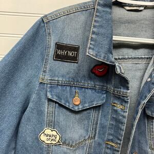 Hwy Jeans Embellished Denim Distressed Trucker Jacket Size XL