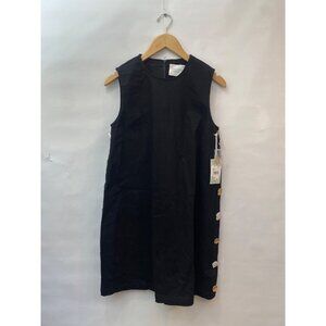 Hyacinth House Bitsy Twill Mini Swing Dress Black Gold Button Sleeveless Medium