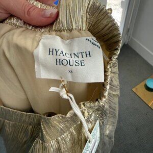 Hyacinth House Gold Metallic Plisse Gloria Maxi Skirt Women's XS