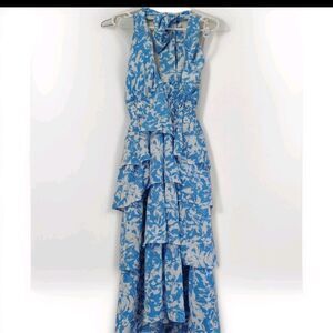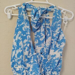 Hyacinth House Jenny Midi Dress Floral Blue White Halter Neck Sz Small Resort
