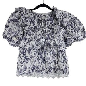 Hyacinth House Nadia Ruffle Blouse XS NWT Navy Floral Cotton Cottagecore Boho