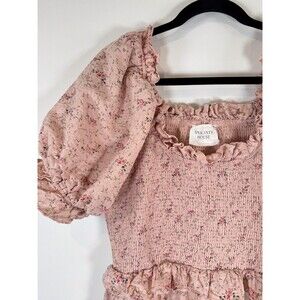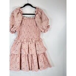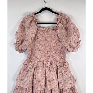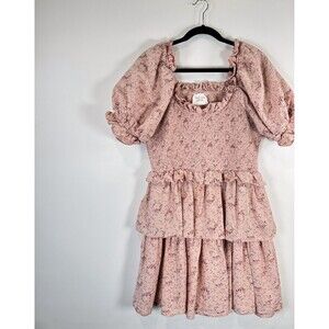 Hyacinth House Womens Dress Beige Mini Floral Smocked Ruffle Puffed A Line Large