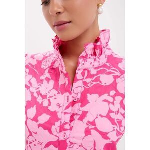 Per online : The best-selling Louisa dress now in an eye-catching Pink Floral is a style we know you'll reach for time and time again. Perfect for resort wear, brunches, showers, and anything in between, the ways to style this maxi are endless. Featuring a feminine ruffle stand collar with short puff sleeves, this straight silhouette is easy to wear all day long. Pair it with sneakers and a crossbody for a casual cool daytime look, or dress it up with heels and clutch for a cute ‘fit for a ladies luncheon.