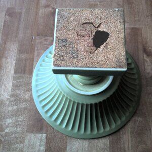 This pedestal bowl was likely made in the 60's. It is excellent condition, with the exception of the cork bottom being torn. The code on the bottom appears to be FK6308 GREEN. There is a slight bit of the original adhesive connecting the base of the bowl to the pedestal showing. The adhesive cannot be seen when it is displayed as intended. Featured around the outside of the bowl is a beautiful ribbed pattern. This bowl could be used in many ways: hold flowers, fruits, candy, and it can also be used at the dinner table for any food items.
