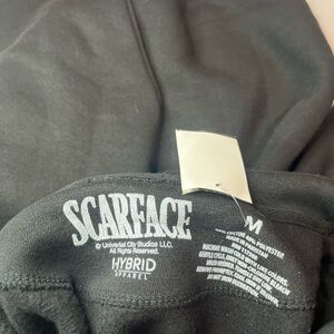 Bold Scarface graphic on a black hoodie. Comfortable and stylish. Ideal for casual wear.