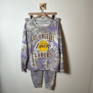 Hybrid Apparel Los Angeles LA Lakers NBA Basketball Purple Tie Dye Graphic Sweatshirt XL and Sweatpants XXL