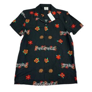 Hybrid Apparel Mens Coca Cola Floral Short Sleeve Button Down Shirt Black S