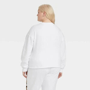 The Hybrid Apparel Women's Cropped Sweatshirt in size 3X is a white, solid-patterned top made from soft and comfortable fabric. It features a crew neck, long sleeves, and a relaxed fit, making it ideal for casual occasions and perfect for showing team spirit, especially for Miami Heat fans. Suitable for fall, this sweatshirt is manufactured in China. New with tags (NWT). Keywords: Hybrid Apparel, women's sweatshirt, cropped, Miami Heat, casual wear, fall fashion, team spirit, sports theme, crew neck, long sleeve, relaxed fit, white sweatshirt.