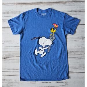 Hybrid Apparel Peanuts Snoopy and Woodstock Carrying the Olympic Torch Tee Shirt sz S