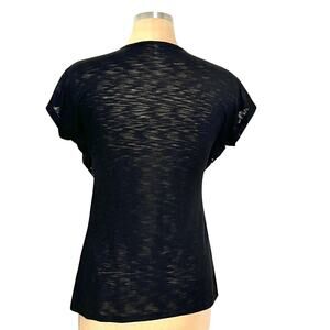 Hybrid Brand Womens Black Top Size Medium Silver Accents Cowl Neck Burnout Retro