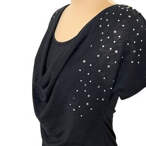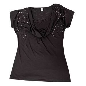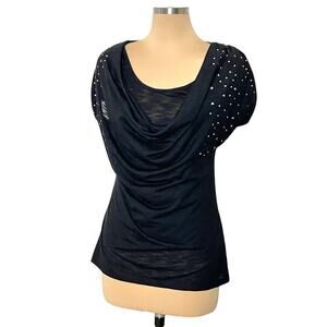 Hybrid Brand Women's Black Top Size Medium Silver Studded Accents Cowl Neck Burnout Retro