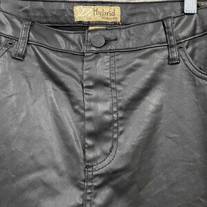 Hybrid & Company Womens Black Faux Leather Plus Pants Size 16 With Pockets