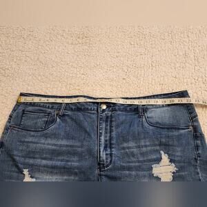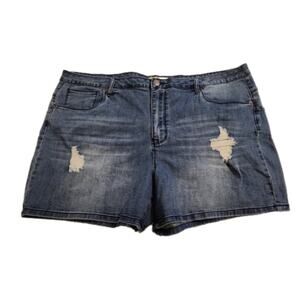 Hybrid Distressed Denim Jean Shorts Medium Wash Rips Plus Size Casual Summer 24