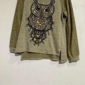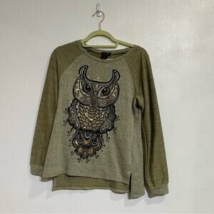 Hybrid Olive Green Owl Crew Neck Sweater Sz L