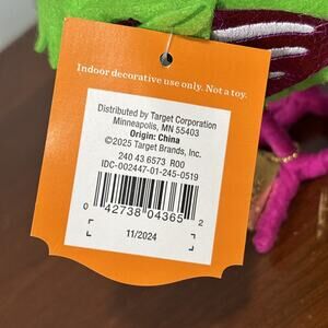 The Hyde And Eek x Target Featherly Friends MOLDY Zombie Fabric Bird is a unique and colorful collectible item designed for Halloween. Made with mixed materials in China, this fabric bird features a fun and spooky zombie design that is sure to add a touch of whimsy to any holiday decor. With its multicolor scheme and current manufacture year of 2025, this Featherly Friends bird is a perfect addition for collectors or anyone looking to add a quirky accent to their seasonal display.
