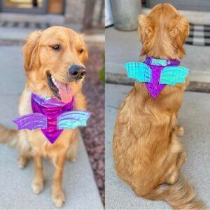 Details: Your furry friend will love being the center of attention in this adorable Purple Dragon Dog Collar Slide Bandana from Hyde & EEK! Boutique. Made from lightweight material, this dog costume features an iridescent purple bandana with dragon wings and a slide closure for secure wear and easy on/off. Whether you have them wearing it against their chest or on their back, you’ll absolutely love taking photos of your dog wearing this stylish and simple little costume.