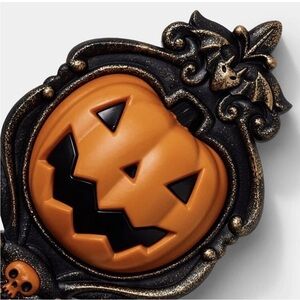 Add a spooky touch to your home with this Halloween pumpkin door knocker. Featuring vibrant orange and black colors, it's perfect for the holiday season.